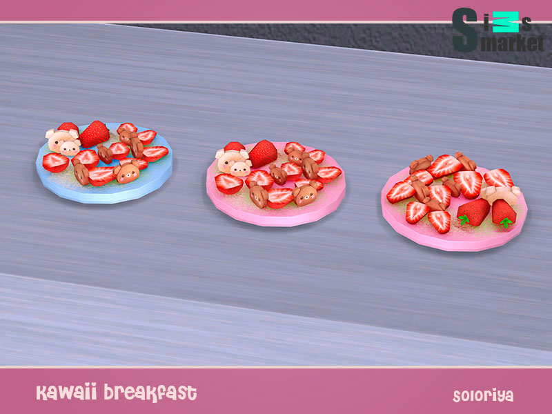 Мод для Sims 4 - завтрак-клубничка на тарелке, имеется два цвета тарелки.