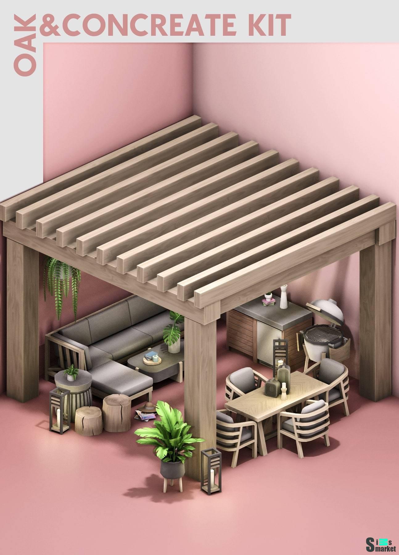 Комплект для внутреннего дворика ",OakandConcrete Patio Kit!", для Симс 4