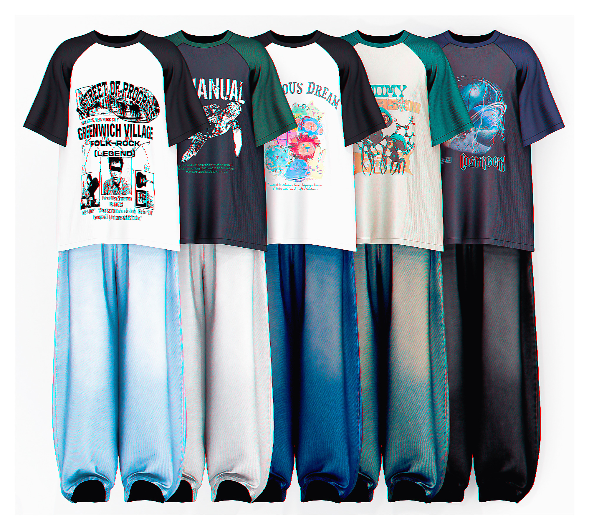 Оригинальная модель, базовая игра, 25 вариантов расцветки 25 вариантов мешковатых джинсовых штанов + Футболка-реглан большого размера с рукавами