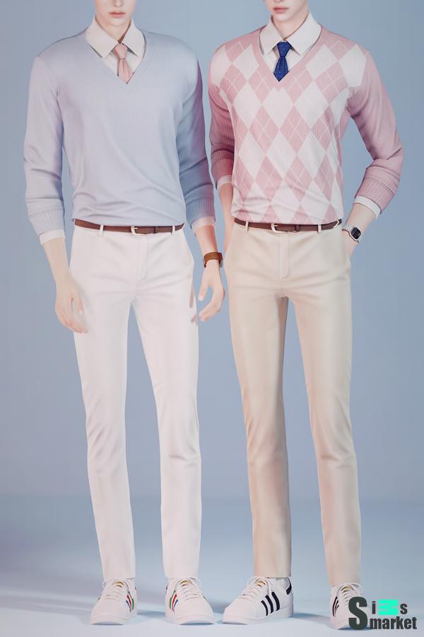 Классическая рубашка с галстуком + джемпер (25 ц.в.) и брюки-слаксы с ремешком (20 ц.в.). Доступно для мужчин. Проверено на лицензионной версии: 1.95.207.1030