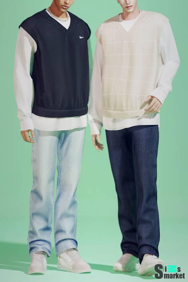 Оверсайз лонгслив + свободный вязанный жилет (30 ц.в.) и широкие джинсы с реалистичный текстурой (15 ц.в.). Доступно для мужчин. Проверено на лицензионной версии: 1.93.146.1020
