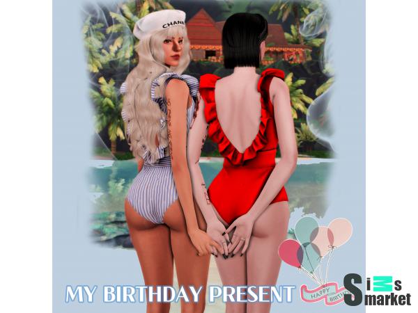 Мод для Sims 4 - Купальный костюм с рюшами для девушек / несколько цветов.