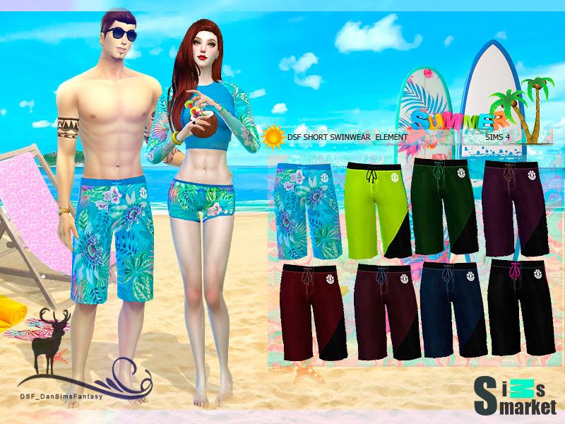 Мод для Sims 4 - летние купальные шорты для текущего сезона! Имеет 8 различных раскрасок.