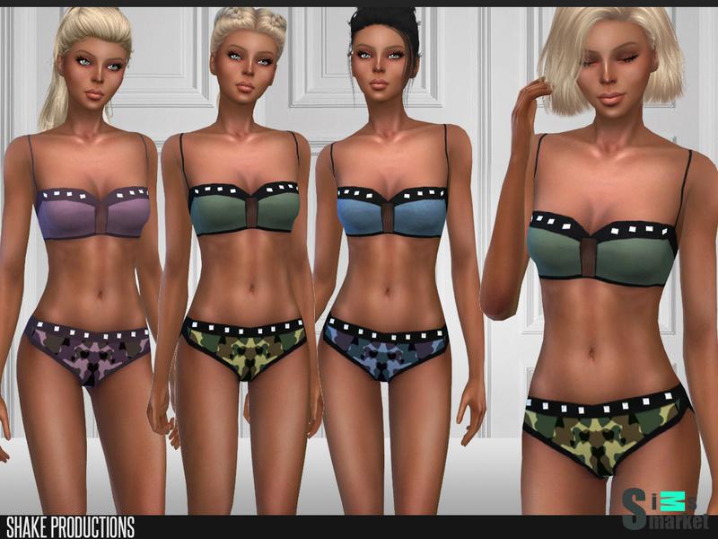 Мод для Sims 4 - разделенный купальник для девушек с ручной росписью. Представлен в 6 цветах.