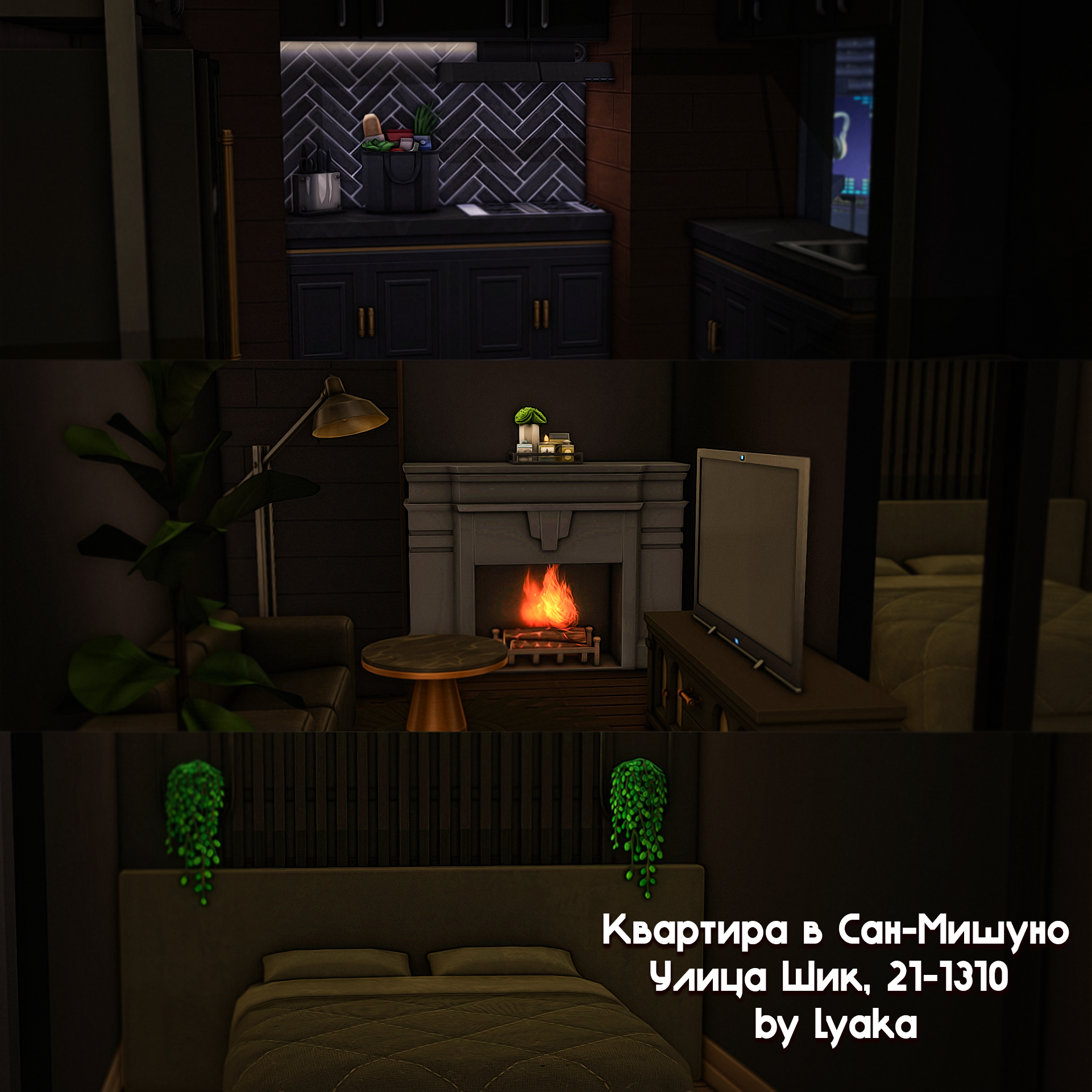 Из доп. контента только кровать. Вы можете ее не скачивать и поставить игровую. Вся остальная квартира без СС.