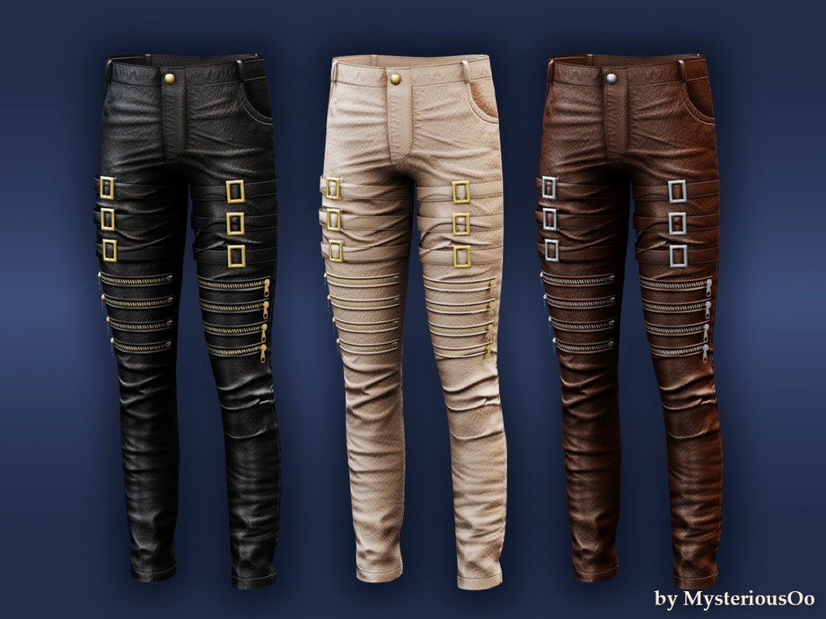 Кожаные брюки с ремнями и молниями в 24 цветах