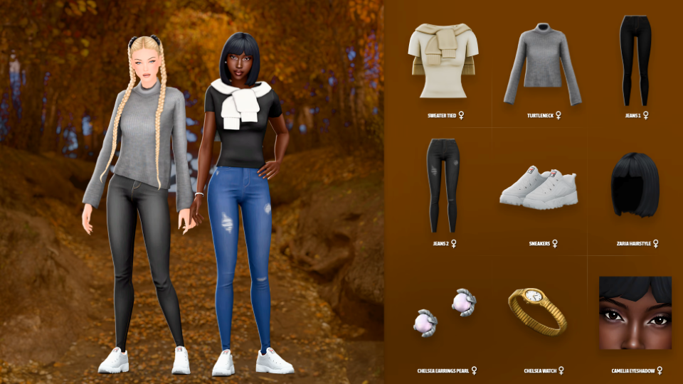 Автор ModCo ▫️В наборе: тени для век, прическа, серьги, часы, джинсы 2, кроссовки, футболка+кардиган, свитер