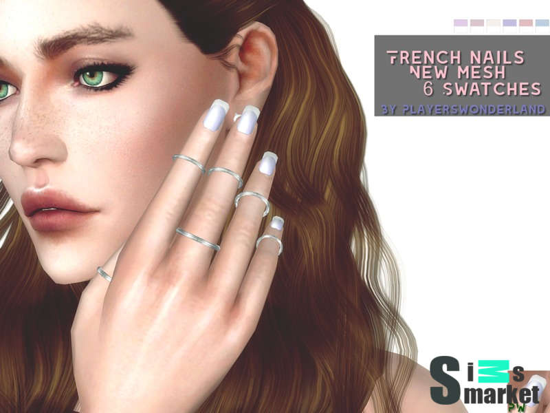 Мод для Sims 4 - маникюр, выполненный в стиле Френч. 6 цветов.