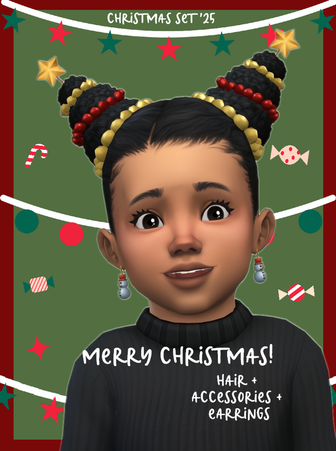 Прическа для тоддлера + украшения для прически в виде аксессуаров + серьги в новогодней тематике