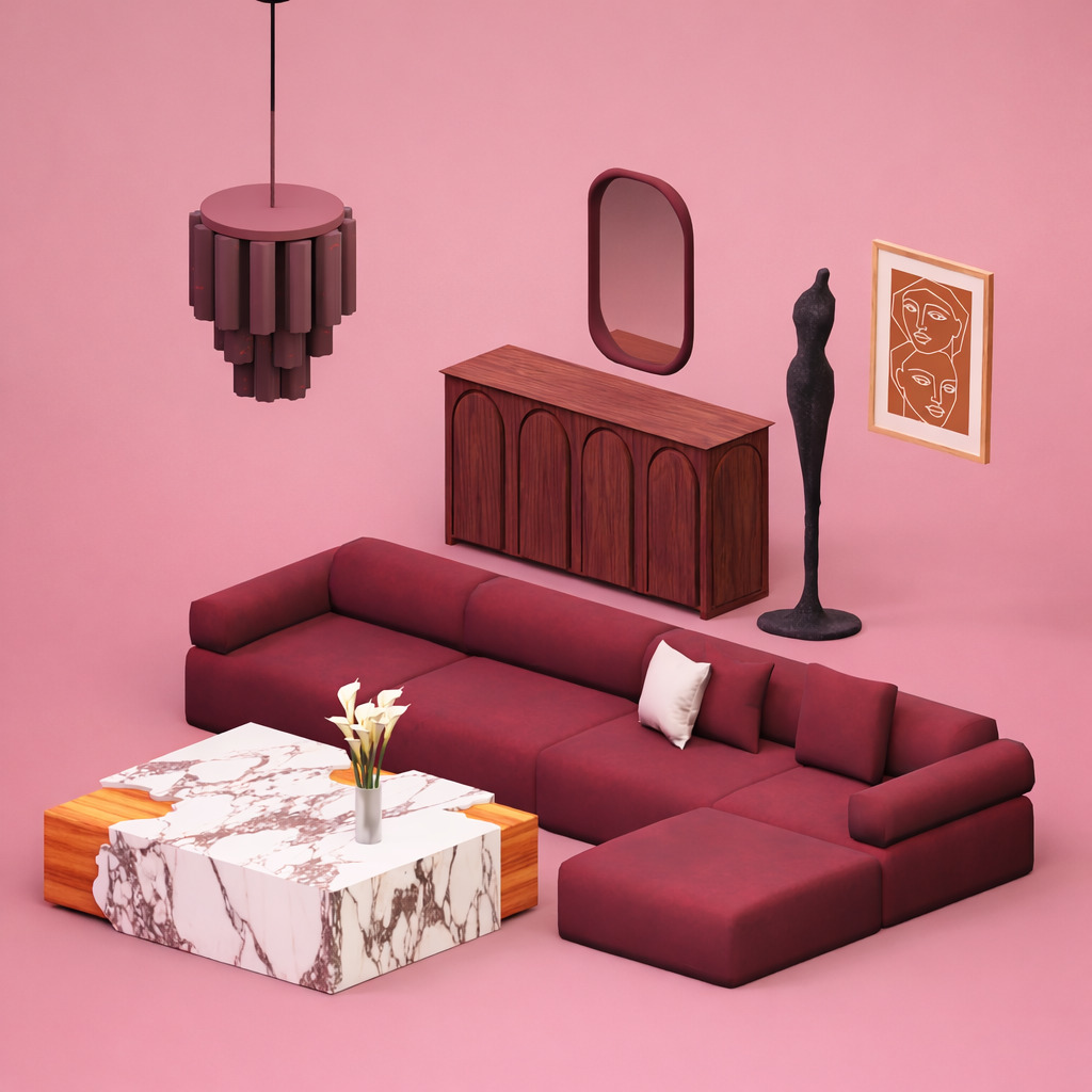 Набор для полуночного отдыха Комплект мебели «Полуночная гостиная» создан для того, чтобы расслабиться после захода солнца. Глубокая обивка, насыщенные тона и сочетание современных текстур делают этот комплект идеальным для симов, которые любят уютные вечера, долгие беседы и гостиные, которые выглядят так же хорошо, как и ощущаются. «Полуночная гостиная» превращает каждый момент в невероятно стильное событие.♡ Что входит в комплект: Диван Кофейный столик Комод Потолочная лампа Рисование Каллалии