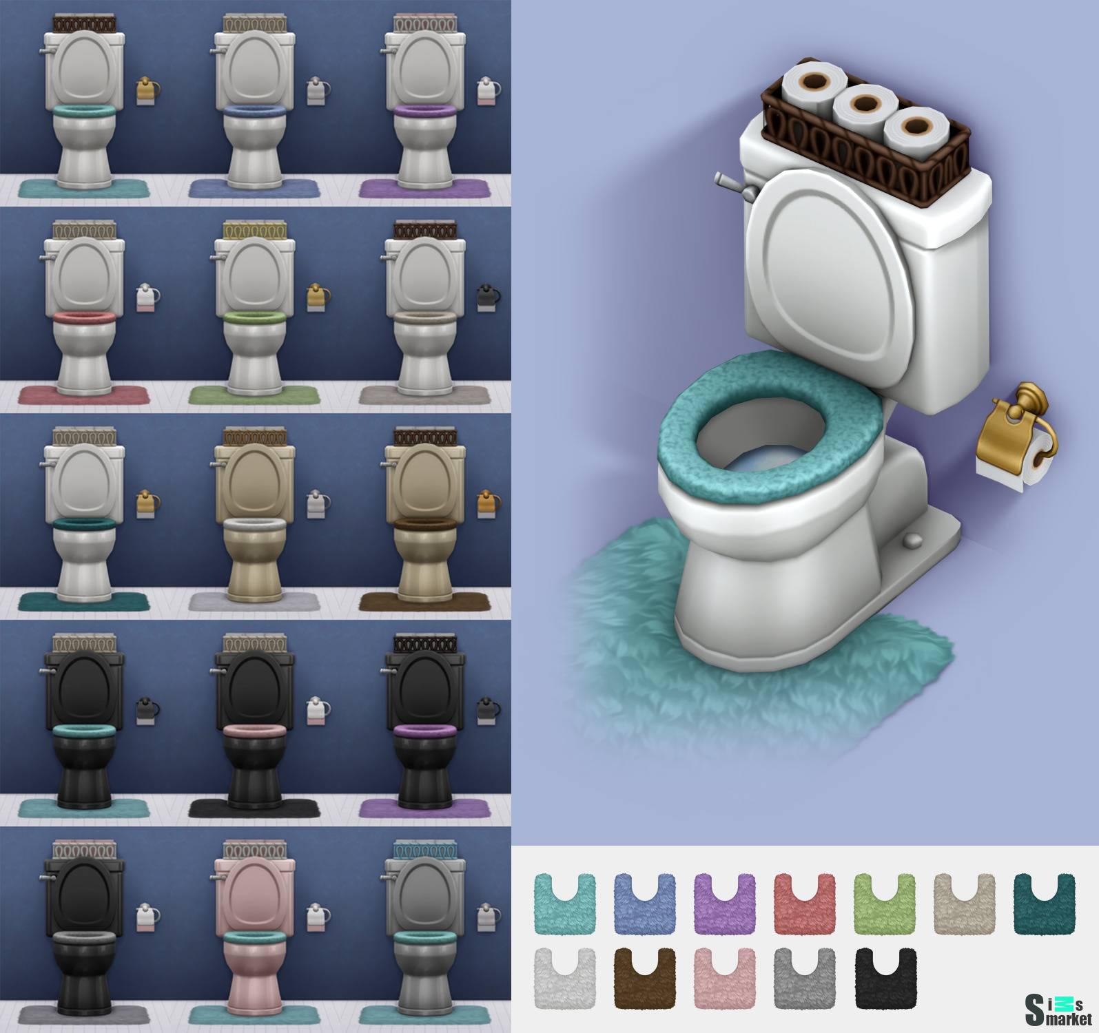 4 объекта: - унитаз - коврик - корзина с туалетной бумагой - туалетная бумага с держателем Maxis Match. Проверено на лицензионной версии: 1.103.315.1020