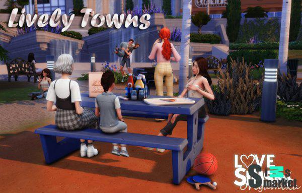 Надоел в игре скучный и привычный город? Мод LIVELY TOWNS может решить эту проблему и оживить город! - В игре появятся рыночные прилавки, в которых вы можете покупать вещи. - А еще вместо того, чтобы нанимать продавца самостоятельно, вы можете сами назначить NPC, который будет ухаживать за магазином в соответствии с графиком часов работы. - Игра конечно же может сама генерировать персонажей для этих новых магазинов, но так же и вы сами можете выбирать персонажей на роль кассиров. - Вы можете размещать новые кассовые аппараты на площадках любого типа и даже размещать несколько объектов (до 3) одного типа. - Каждый магазин имеет свои уникальные дни и часы работы. - Модули вы можете скачивать по желанию, но они сильно разнообразят работу мода. Однако имейте в виду, что сама база работать не будет, нужен хотя бы 1 модуль. Для этого установите сам мод, а затем выберите нужные вам приведенные ниже модули. Магазин искусств и ремесел Магазин искусств и ремесел продает материалы для рукоделия и предметы, созданные другими персонажами. В зависимости от установленных вами дополнений сюда входят: - Деревообработка (столярный станок), - Вязание, - Свечи, - Вышивка крестиком, - Сезонные ремесла. Книжный магазин Книжный магазин позволяет покупать книги, а так же продавать те, что написали вы. Цветочный магазин Цветочный магазин позволяет вам купить различные семена и цветы для вашего сада. Если у вас есть дополнение «Времена года», вы также можете приобрести цветочные композиции, чтобы подарить их другим или украсить ими свой дом. Требуется XMLinjector Дополнения: Времена года, Загородная жизнь, Экологичная жизнь, Нарядные нитки.