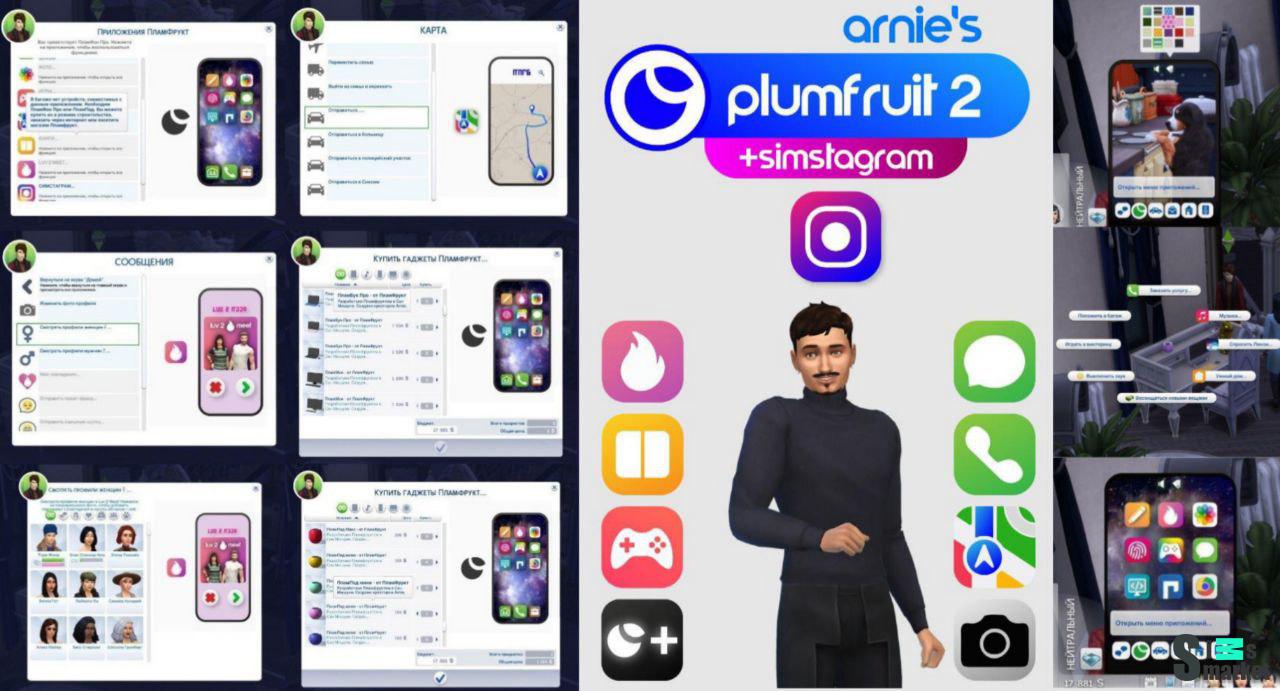 Данный мод заменяет существующий смарфтон в Sims 4, вводит новые РС, ноутбуки, планшеты и смартфоны, изменяет принцип работы с игровым миром путем представления его в виде отдельных мини-приложений. В общем и целом, представьте, что у всех появились гаджеты известного яблочного бренда. Новые телефоны PlumPhone: замена основного игрового телефона для всех симов, теперь также с переработанными экранами (например, когда симы посещают Simstagram или отправляют текстовые сообщения кому-либо). PlumPhone Pro: вы можете купить этот телефон Pro в каталоге строительства или в магазине Plumfruit через телефон, положить его в свой инвентарь, и он откроет доступ к новым приложениям и игровому процессу. Он просто должен быть в инвентаре. Новые приложения Пользовательский интерфейс телефона и функции изменились. Теперь вы можете получить доступ к некоторым новым приложениям прямо со своего телефона! Некоторые из них являются эксклюзивными для PlumPhone Pro (или PlumPad). Об этом будет сообщено во всплывающих сообщениях. - Телефон: звоните контактам, арендуйте услуги, все в одном приложении. - Сообщения: теперь вы можете отправлять кокетливые сообщения, GIF-файлы, шутки и т. д. своим контактам прямо из меню PlumPhone! - Камера: новая система камер в этом телефоне имеет новый пользовательский интерфейс, но также позволяет делать снимки в формате HD с возможностью масштабирования и все это прямо с вашего телефона. - Карты: путешествуйте, приглашайте, выезжайте, вы знаете особенности, теперь все воссоединилось в этом приложении. Даже к инопланетянам в гости Вперед! - Электронные книги: коллекция электронных книг теперь доступна как на устройствах PlumPhone Pro, так и на устройствах PlumPad! Вы действительно можете научиться навыкам из этих книг (например, «Обаяние для дураков» или «Все о садоводстве») или, может быть, вы просто хотите повеселиться и прочитать тысячу раз «Генри Пуффер и волшебный камень»… Luv’2’Meet: приложение для знакомств было полностью переработано! Теперь вы можете сопоставлять некоторых симов, отправлять кокетливые сообщения, шутки, гифки и многое другое! Может быть, это начало вашей цифровой сказки?? - Game Arcade: отличные мобильные игры воссоединились в одном приложении! - Библиотека фотографий: выберите несколько фотографий в своей библиотеке, чтобы загрузить их в Simstagram, или просто удалите их! Это так просто! - Симстаграм: самая известная платформа социальных сетей теперь более совершенна, чем когда-либо! Новый Симстаграм (Simstagram) Первая социальная сеть в The Sims 4. Теперь вы можете открыть собственную учетную запись Simstagram! Загружайте фотографии со всего мира или прямо на свой телефон с помощью нового средства выбора фотографий! Наберите подписчиков!!! Каждая фотография, размещенная в Интернете, будет привлекать к вам все больше и больше подписчиков, и кто знает, возможно, завтра вы проснетесь знаменитым! Получайте комментарии! Горожане по всему миру любят комментировать ваши фотографии в симстаграме, будь то их официальный аккаунт или анонимные комментарии… для более деликатных намерений… Посетите профили Proximity! Вы можете свободно посещать профили Simstagram окружающих вас симов, добавлять комментарии к их фотографиям или даже отправлять им сообщения. Посетите все профили в мире! Вы также можете посещать профили симов, которые находятся далеко, но вы не сможете их комментировать. Эта 