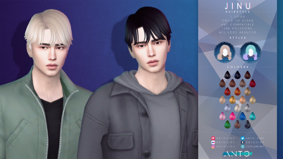 Мужская прическа - Jinu Hairstyle (Maxis Match)