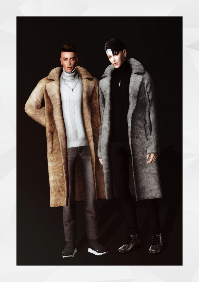 Теплый вязанный свитер + расстегнутое меховое пальто в 20 цветовых решениях. HQ совместимо. Доступно для мужчин.