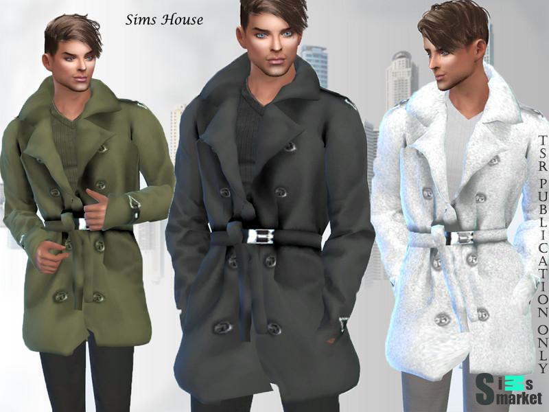 Мод для Sims 4 - длинный мужской плащ с поясом