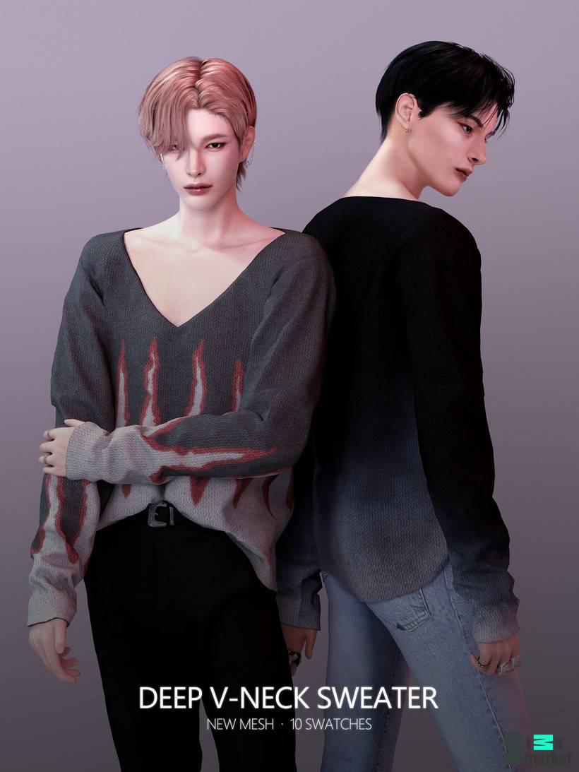 Мужской свитер ",Deep V-neck Sweater", для Симс 4