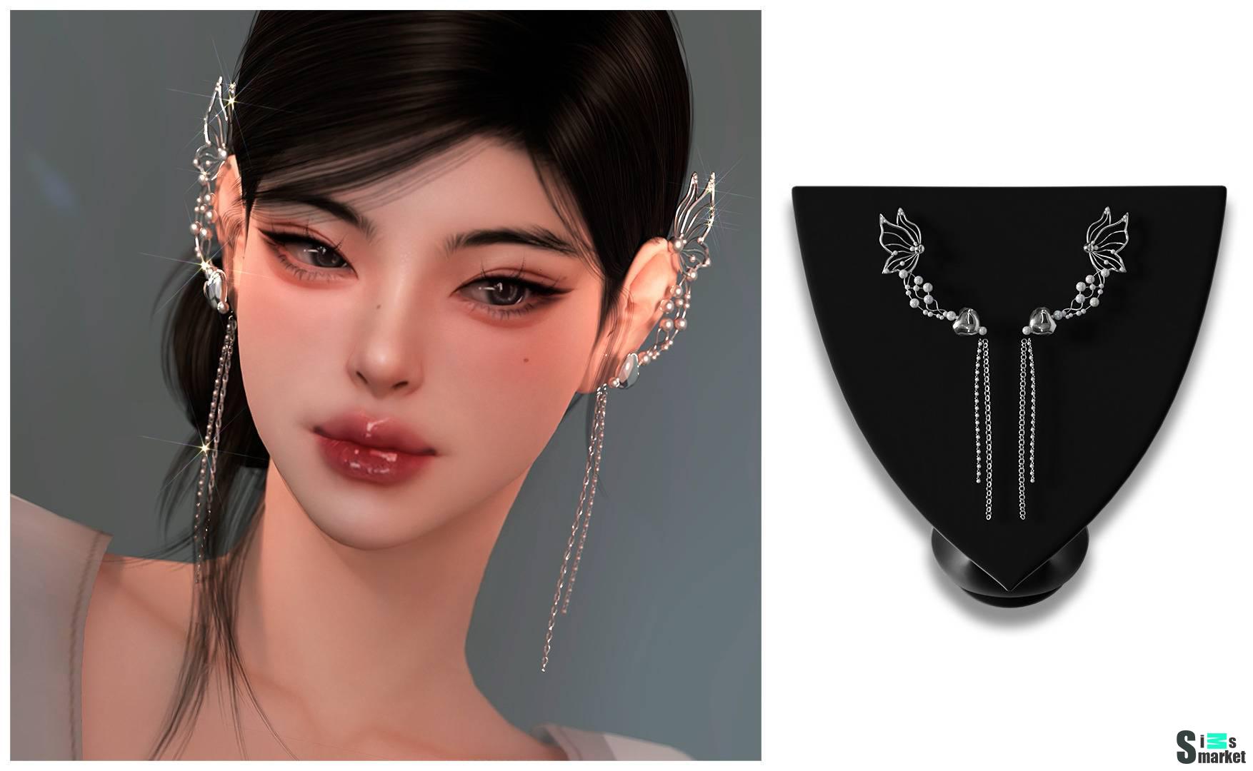 Набор аксессуаров ",Butterfly Shaped Silver Earrings", для Симс 4