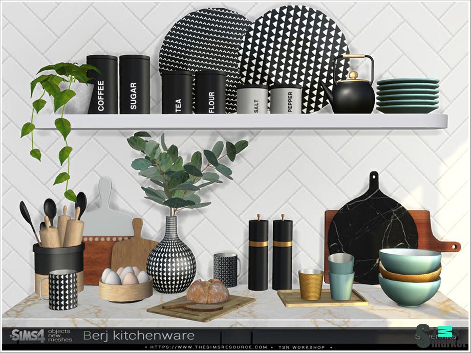 В набор входит 16 предметов: - большие баночки для специй, - средние баночки для специй, - маленькие баночки для специй, - кружка, - чайник, - разделочные доски в двух вариантах, - доска с хлебом, - подставка сос таканами, - специи, - несколько видов тарелок/мисок, - яйца, - ваза с ветками эвкалипта,