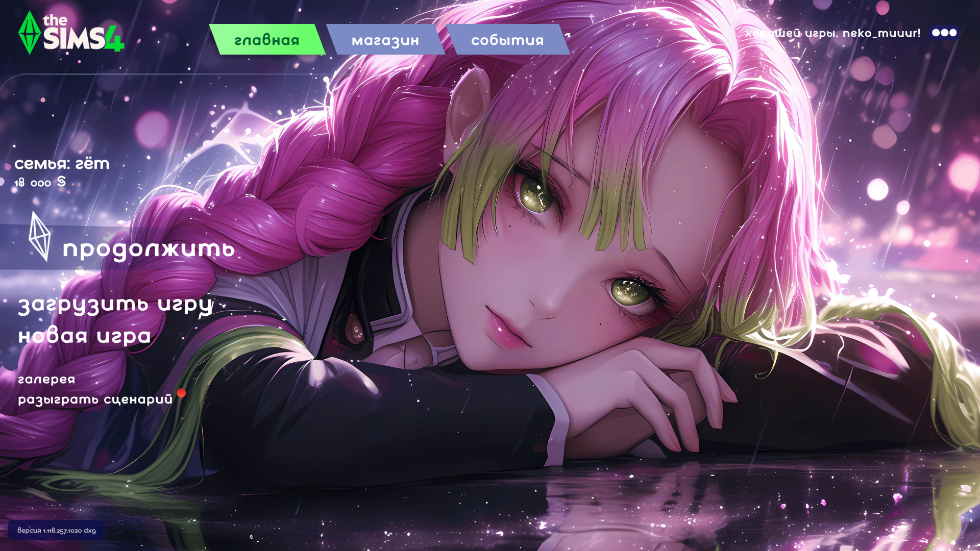Работает на версии 1.118!!! Ниже не проверяла. Поддержать, и заказать свое мейн меню или экран загрузок можно тут -- https://boosty.to/neko_mur/posts/3b365bf5-3837-460f-b792-f9dd7644bdcc?share=post_link