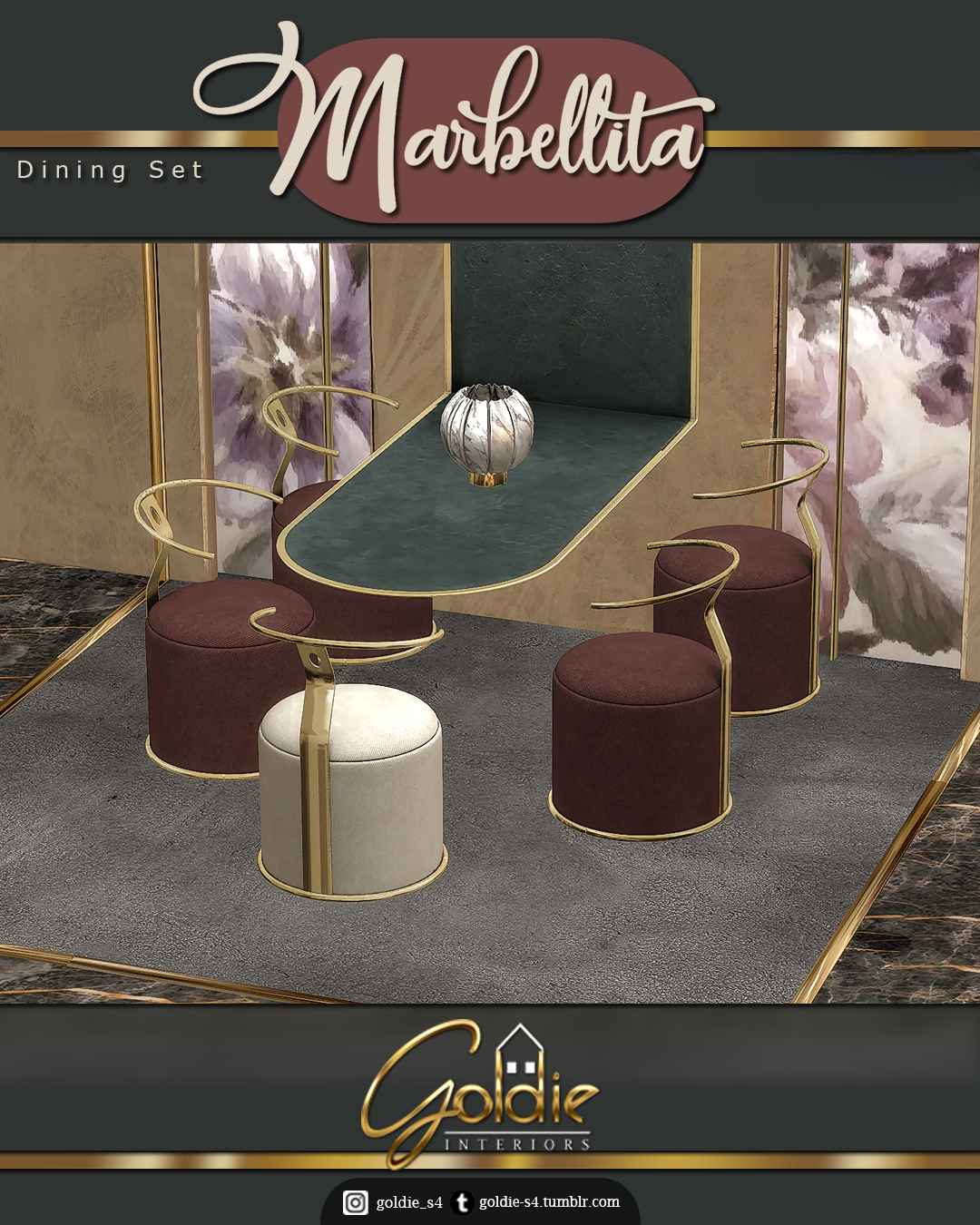 Автор GOLDIE | В наборе: стеновая панель в двух размерах, обеденный стул, ваза, обеденный стол