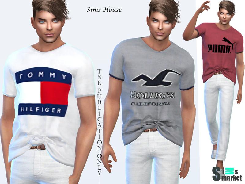 Мод для Sims 4 - футболки большего размера для мужчин с лого разных брендов
