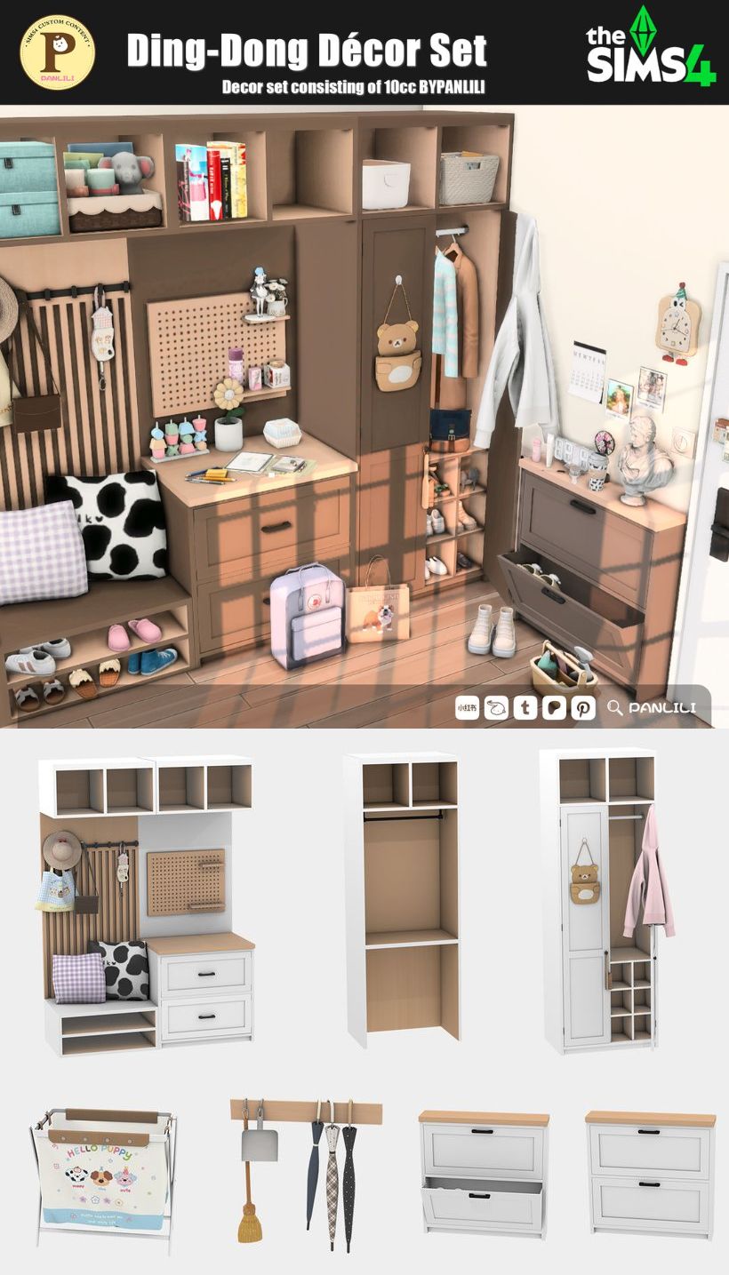 Набор декора для вашей прихожей «Динг-Донг» Это набор прихожих с множеством цветных карточек. Модульные шкафы могут впитывать друг друга. Обратите внимание на модульный шкаф с подушками. На самом деле это один диван. Вам нужно всего лишь передвинуть два шкафа, чтобы найти точку всасывания дивана. Потому что я изменил положение дивана. Если вы переместите диван, чтобы найти точку всасывания шкафа, они пересекутся. Корзина для грязного белья « Ему нужна стирка» (доступна декорированная версия). Подставка для зонта «Ему нужны времена года» (в декоративной версии). • 10 товаров • 6–22 образца цветов