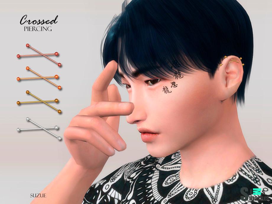 Мод для Sims 4 - перекрещенный пирсинг для парней / несколько цветов.