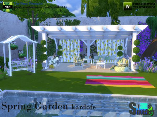 Мод для Sims 4 - площадка для отдыха у бассейна, включает: качели, мягкую садовую мебель, лимонад и стаканы (и прочее на картинке).