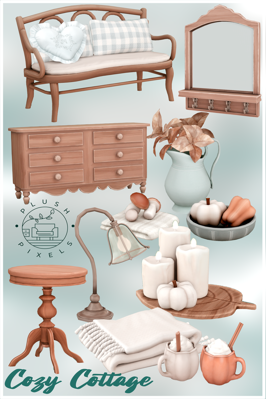 Чувствуете аромат тыквенных специй? Осень пришла, пора доставать пледы из шкафа и укутываться потеплее! Этот осенний набор состоит из 14 уютных предметов разных цветов. Все они совместимы с базовой игрой и их можно найти по названию набора в игре. 14 элементов интерьера: - скамья - подушки (2 вида, см. в разделах Скульптуры и Другое во вкладке Украшения) - зеркало с крючками - кувшин с листьями - комод - декоративный столик - настольная лампа - сложенный плед - чашка с напитком - деревянный поднос в форме листа - декоративные свечи - чаша с тыквами - грибы на сложенном полотенце P.S.: для того чтобы корректно разместить подушку-сердечко используйте код bb.moveobjects и горячие клавиши 9 и 0 - если у вас обычная камера и Ctrl+9 и Ctrl+0 - если у вас камера The Sims 3.