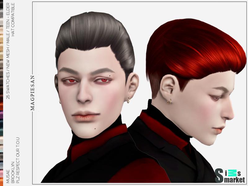 Мод для Sims 4 - мужская длинная прическа, зачесанная назад, в наличии как классические так и яркие цвета, совместима с головными уборами