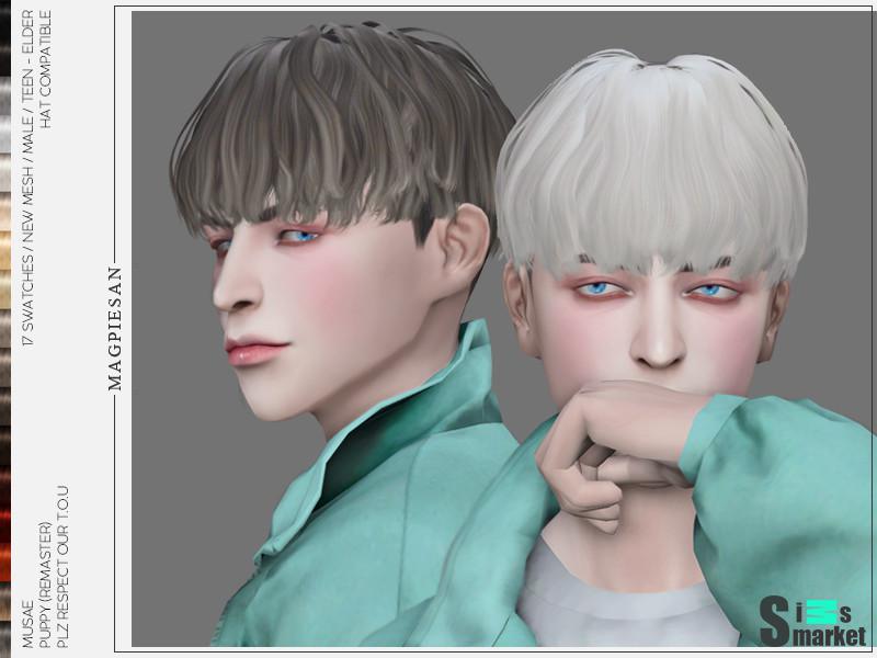 Мод для Sims 4 - средняя мужская прическа в стиле корейских поп музыкантов, 17 цветов, HQ