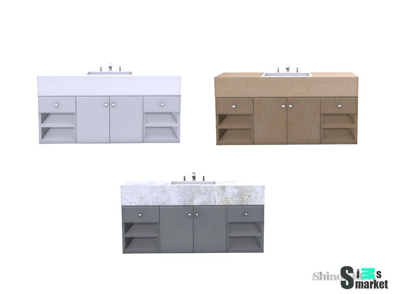 Мод для Sims 4 - широкая раковина для ванной комнаты, имеются шкафчики.