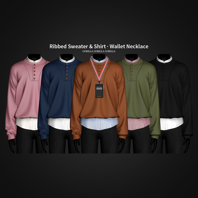 Ribbed Sweater and Shirt and Wallet Necklace - Gorilla Gorilla Gorilla