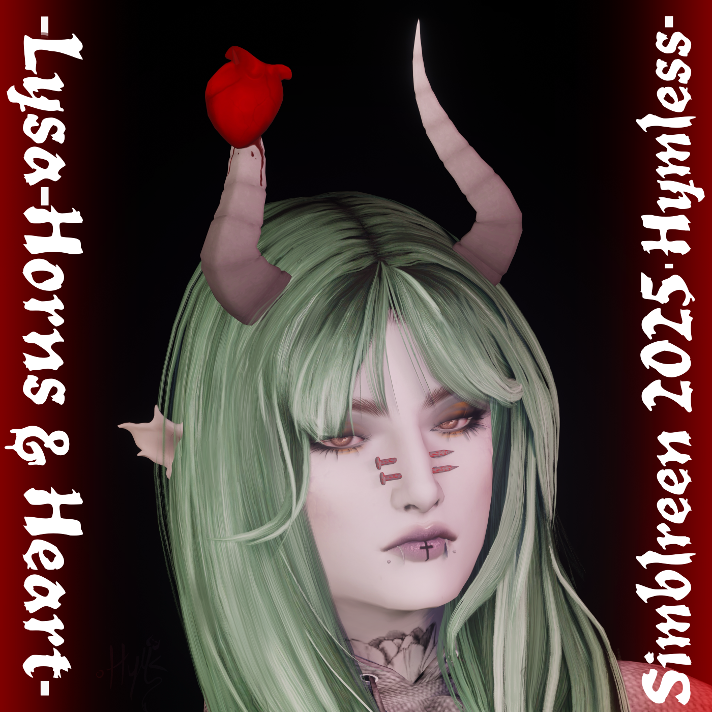 - Унисекс , - 70 вариантов окраски рожек / 35 разных цветов сердца , - Каждый цвет сердца имеет 2 версии: с кровью и без , - Расположение: Голова сима → Детали кожи → Оккультные брови (РОГА) | Шляпы / Головные украшения (СЕРДЦЕ)