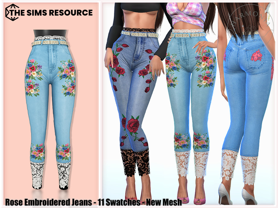 New Mesh 11 Swatches Джинсы с вышитыми розами