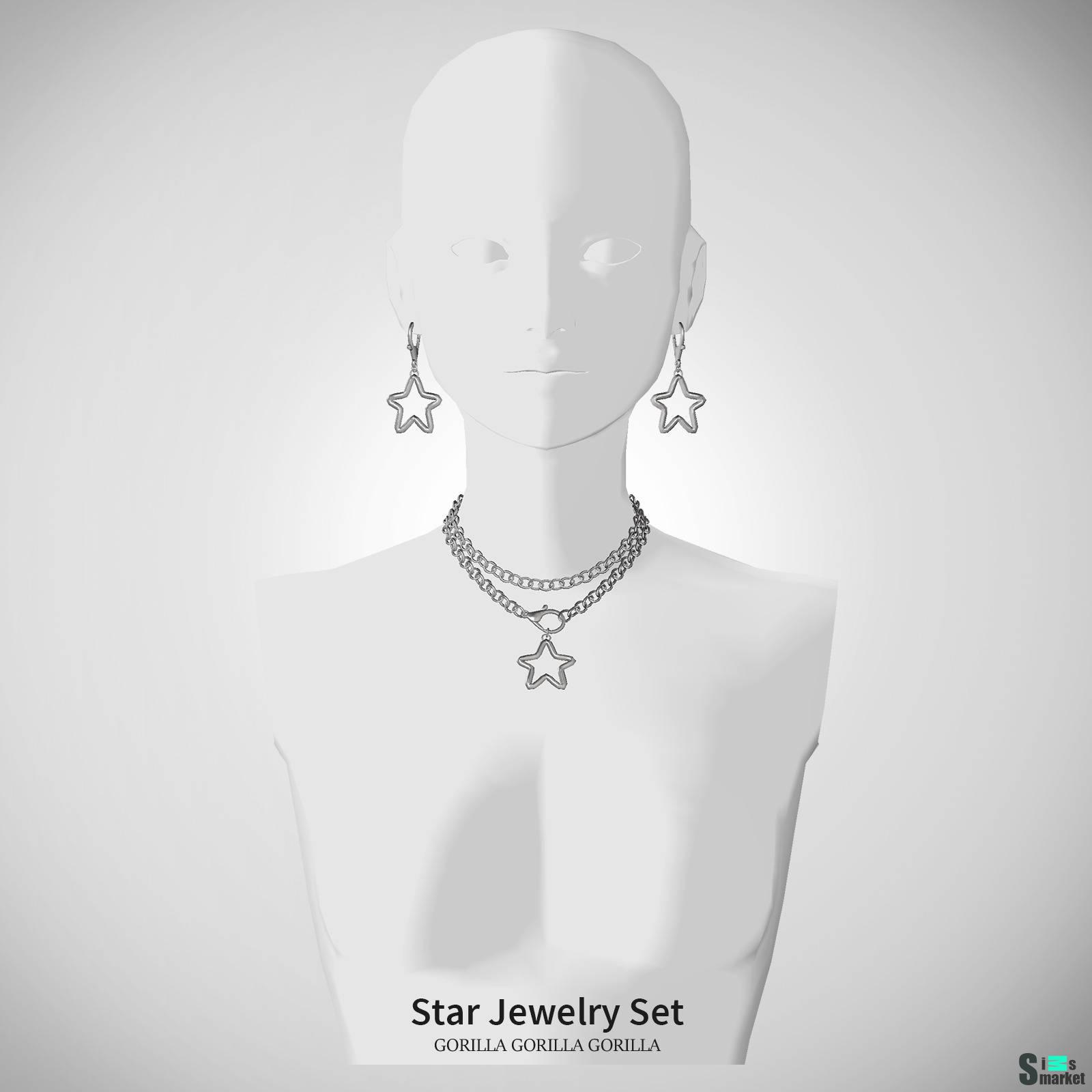 Серьги и цепочка ",Star Jewelry Set", для Симс 4