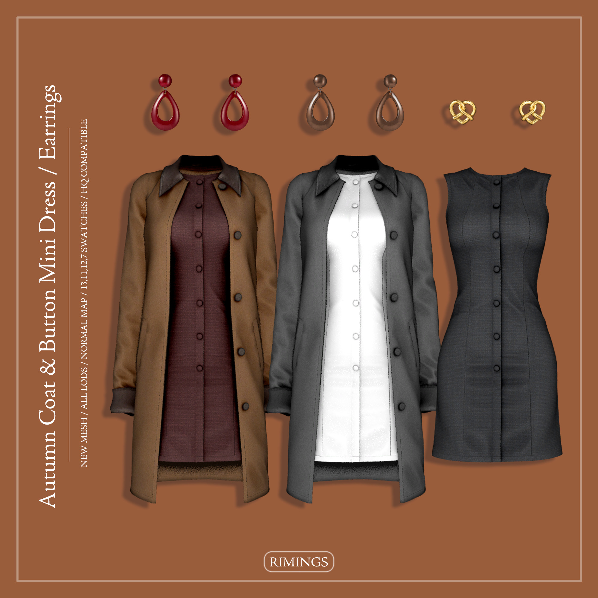 Сет женской одежды - Autumn Coat and Button Mini Dress / Earring