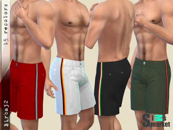 Мод для Sims 4 - 15 шорт для человека с боковой полосой в разных цветах. Вы также найдете флаги Италии, Германии и Франции.