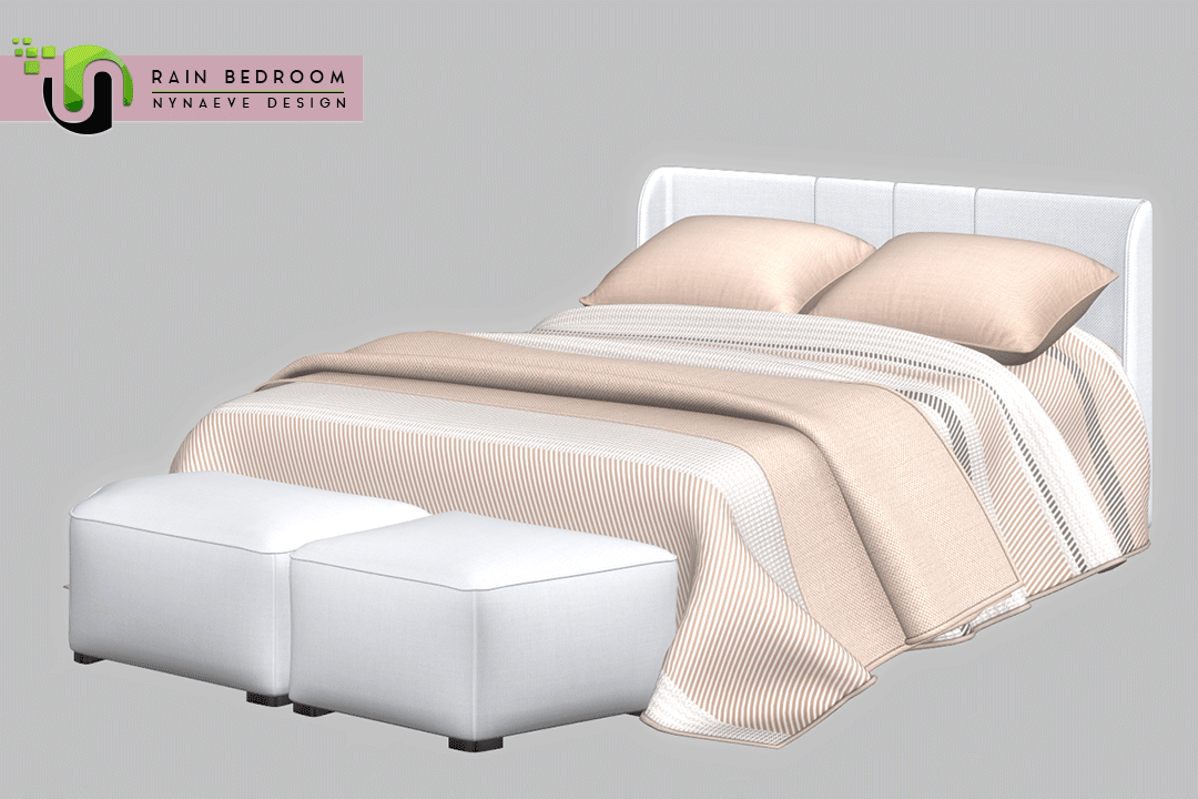 Спальня Rain Bedroom для Симс 4 💭 Автор: Nynaeve Design 13 объектов интерьера: - каркас кровати - функциональное постельное бельё - декоративные покрывала (2) - декоративные подушки - прикроватная тумба - пуфы (2) - комоды (2) - настенное зеркало - декор для стен - верхний свет P.S.: для того чтобы корректно собрать кровать необходимо использовать код bb.moveobjects. ❗ФУНКЦИИ КРОВАТИ ПОЯВЛЯЮТСЯ ТОЛЬКО ПРИ НАЖАТИИ НА ПОСТЕЛЬНОЕ БЕЛЬЁ❗