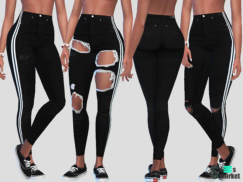 Мод для Sims 4 - спортивные женские джинсы с полоской, имеется три вида.