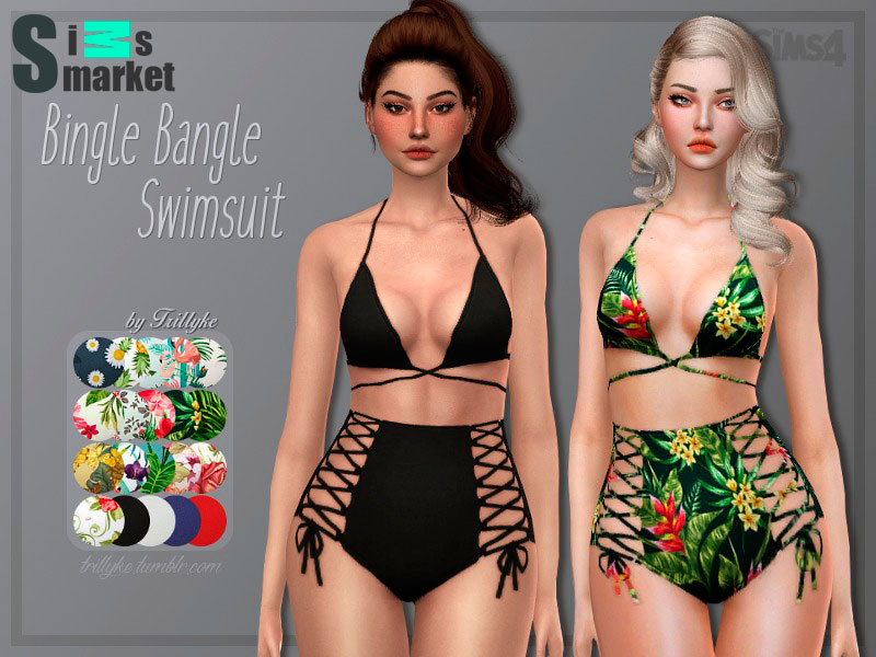 Мод для Sims 4 - красивый и модный цветочный купальник для женщин, имеется 16 цветов.
