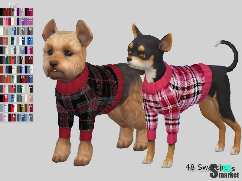 Мод для Sims 4 - милый свитер для маленьких собак. Имеется 48 цветов.