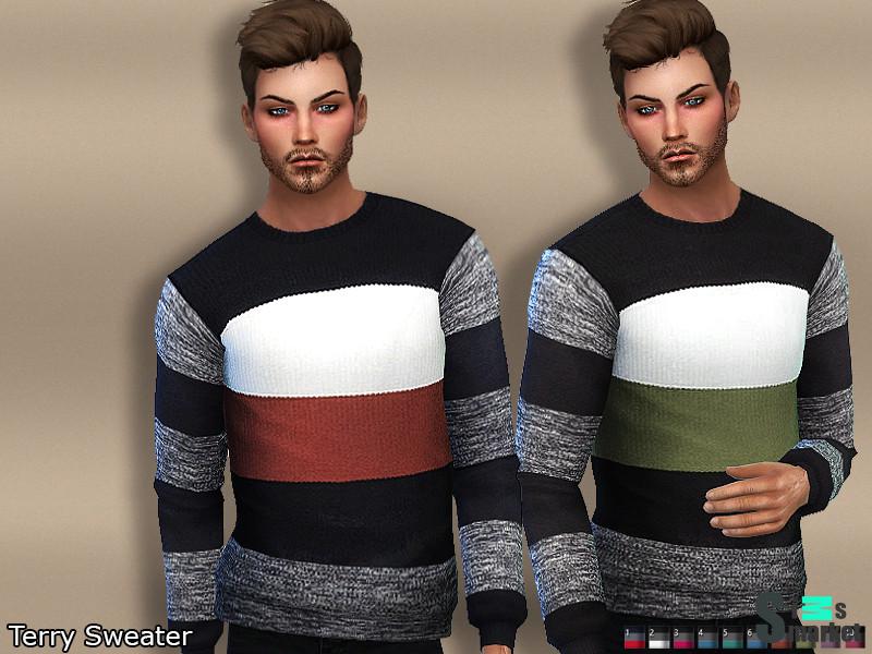 Мод для Sims 4 - мужской свитер в-полоску для холодной погоды, 10 расцветок