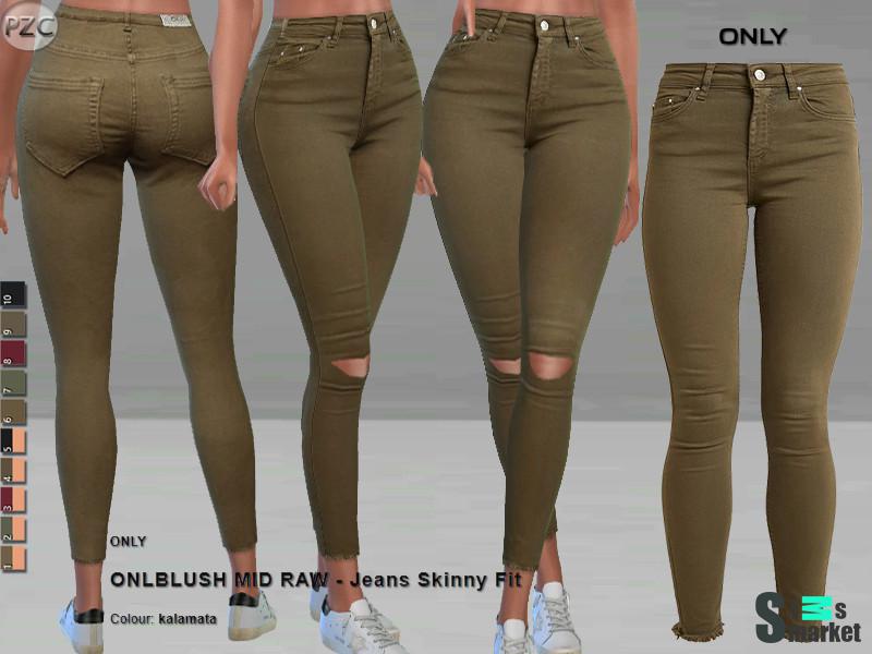 Мод для Sims 4 - Узкие джинсы Only Blush Mid. -10 образцов, 5 цветов и 2 стиля (обычный и разорванный по колено).