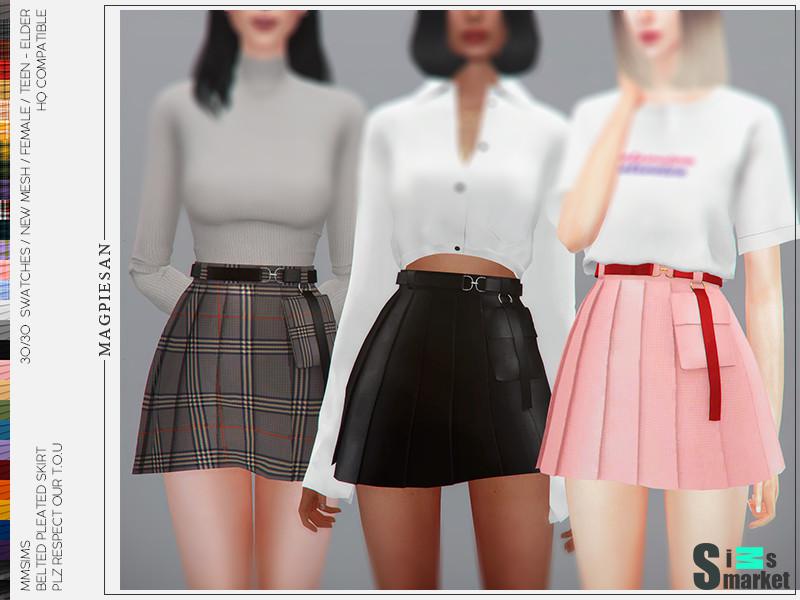 Мод для Sims 4 - прекрасная короткая юбка для девушек с поясом, 30/30 цветов, цвет пояса изменяется в категории перчаток, HQ текстура