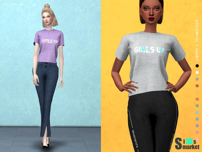 Мод для Sims 4 - футболка для девушек с надписью Girls Up в 12 расцветках! Новая сетка!