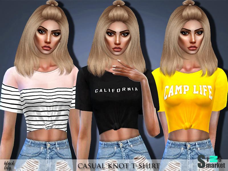 Мод для Sims 4 - футболка для девушек с завязанным узлом. Выполнена в 3 стилях!